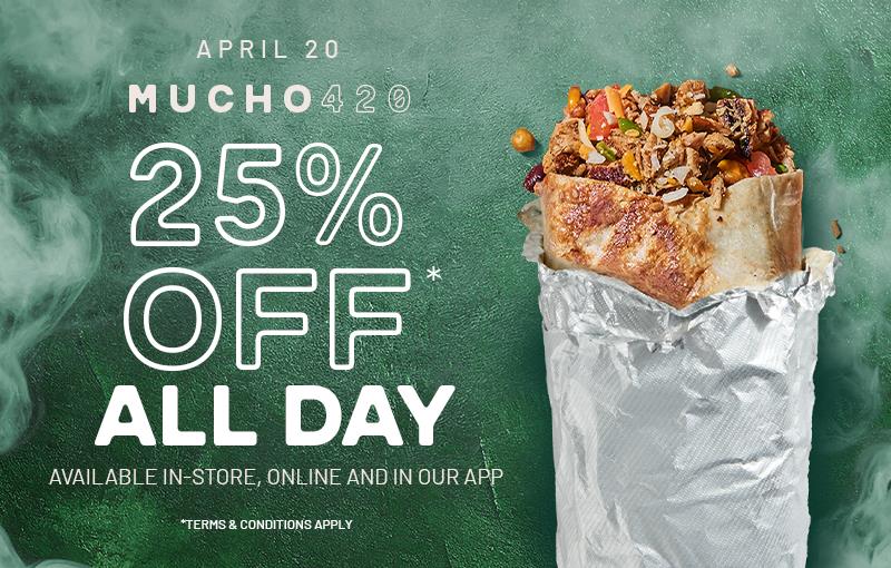 Get 25% OFF* all day on April 20th when you spend $20 or more. The discount auto-applies online and in our app.