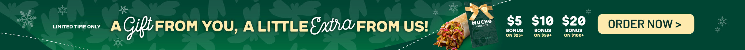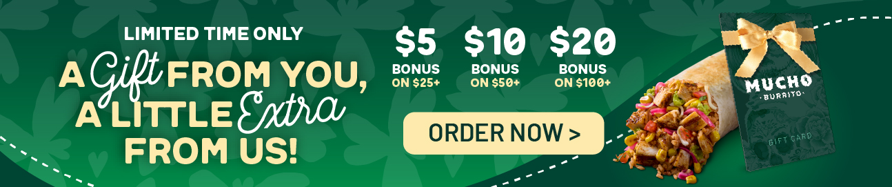 By subscribing to MUCHO Burrito’s newsletter, you agree to your personal information being collected and stored by service providers who have partnered with us. Your information will be shared with MUCHO Burrito so the latest news about menu items, limited time offers and giveaways can be sent directly to your inbox. Occasionally, MUCHO Burrito or its service provider(s) may ask for your feedback which allows us to improve our products and services that we offer to you.